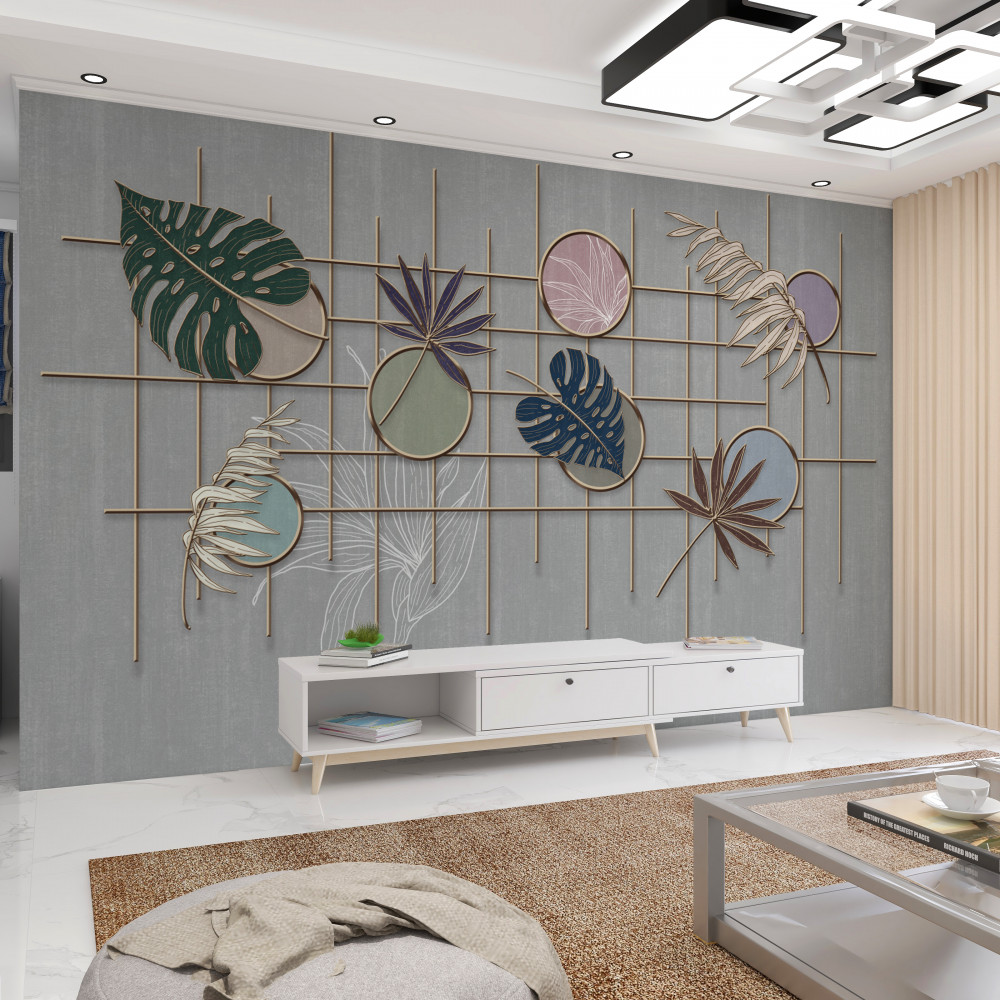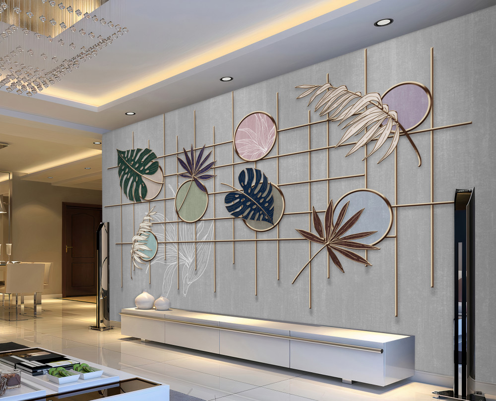 Tapeta Fototapeta liście roślin tropikalnych na złotej siatce (artykuł a90428 ) z kategorii Fototapety 3D