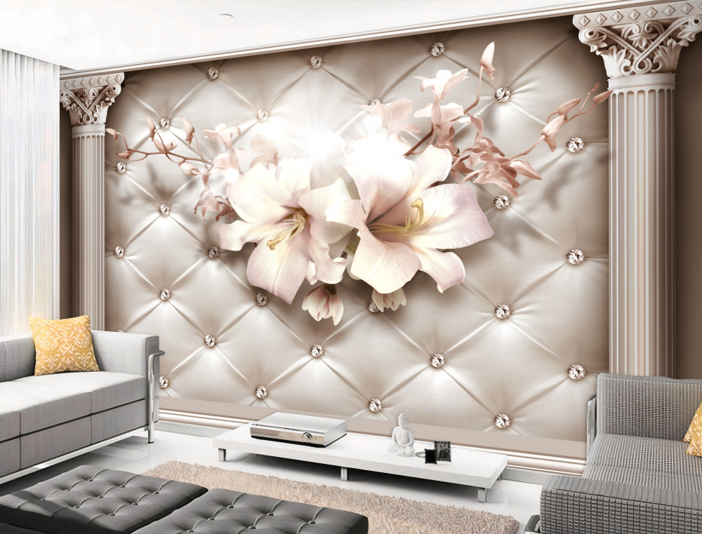 Tapeta Fototapeta łuki z białymi liliami i perłami (artykuł a91344 ) z kategorii Fototapety 3D