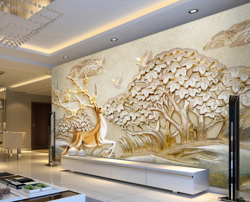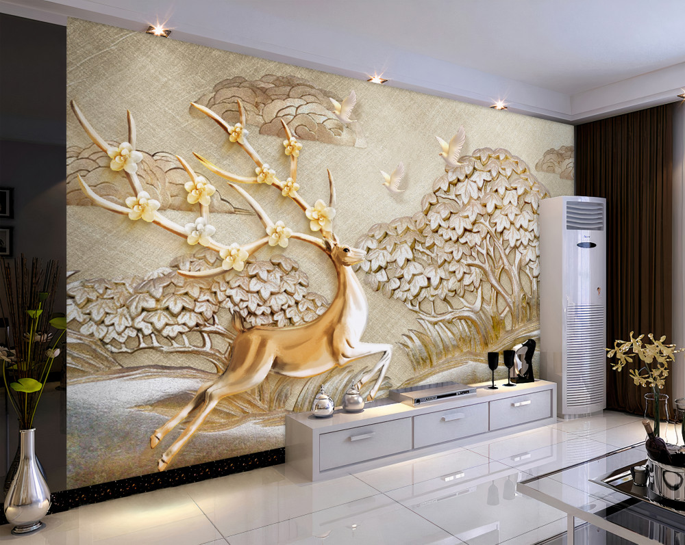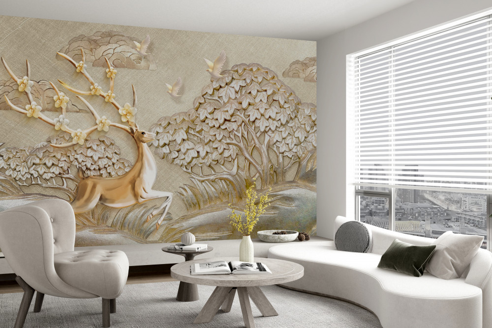 Tapeta Fototapeta luksusowy biegający złoty jeleń na łące (artykuł pb10014 ) z kategorii Fototapety 3D