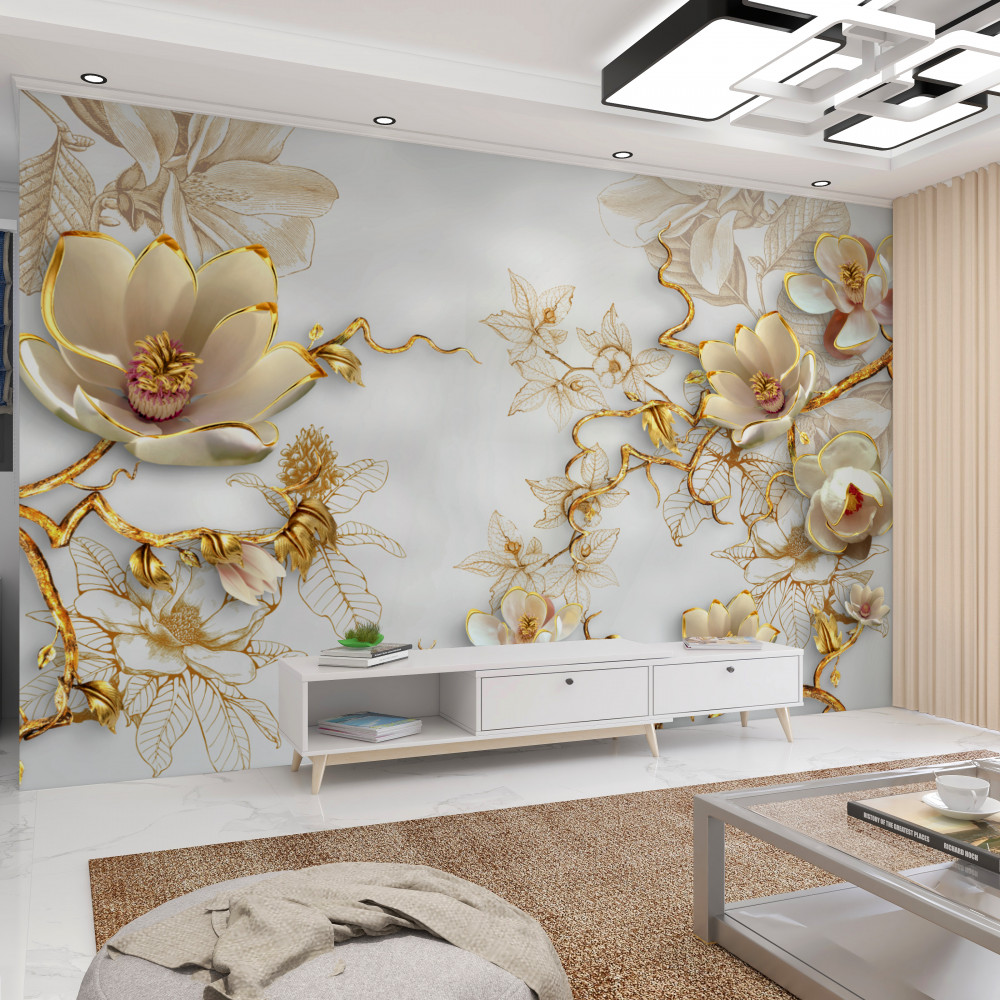 Tapeta Fototapeta magnolia kwitnąca na złoto (artykuł a91260 ) z kategorii Fototapety 3D