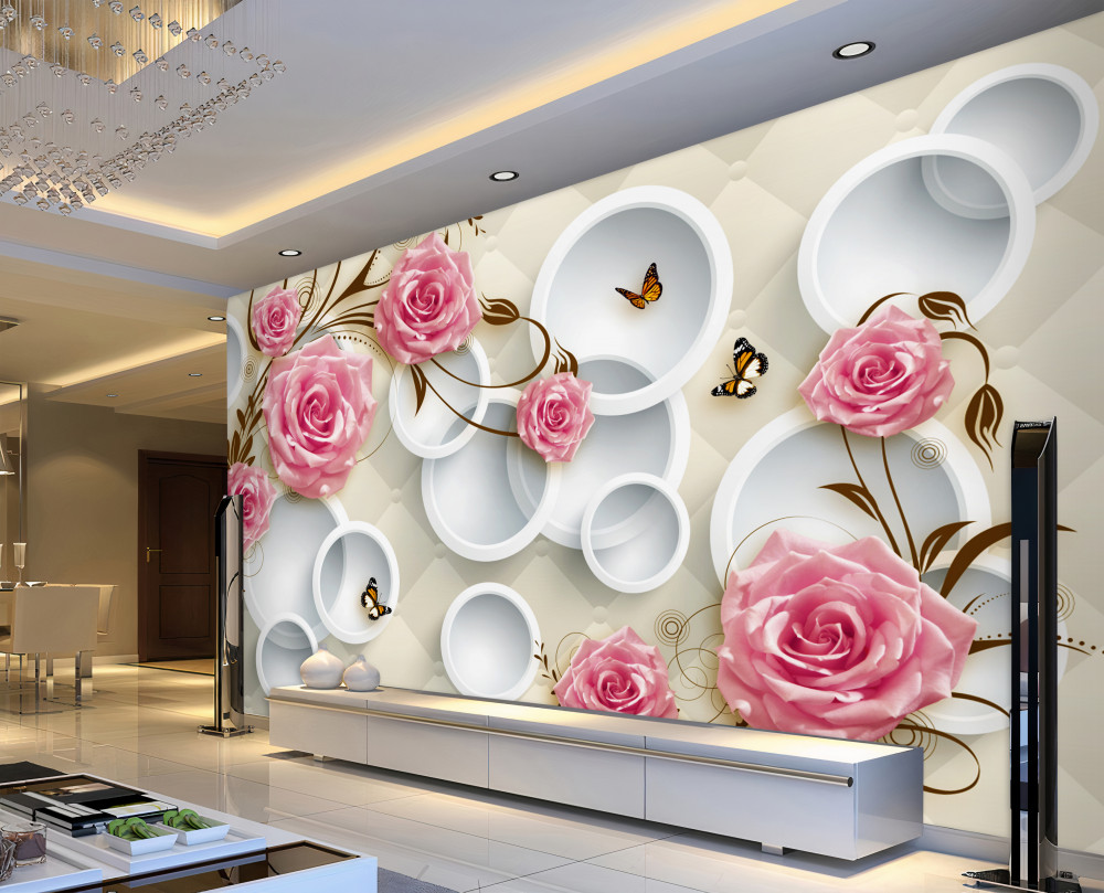 Tapeta Fototapeta miękka różowa róża krzewiasta na geometrycznym tle (artykuł a91105 ) z kategorii Fototapety 3D
