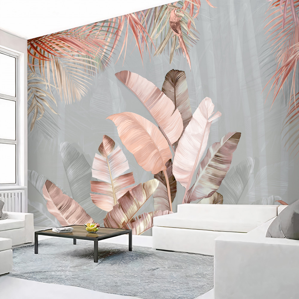 Tapeta Fototapeta miękkie różowe liście tropikalne (artykuł a90846 ) z kategorii Fototapety 3D