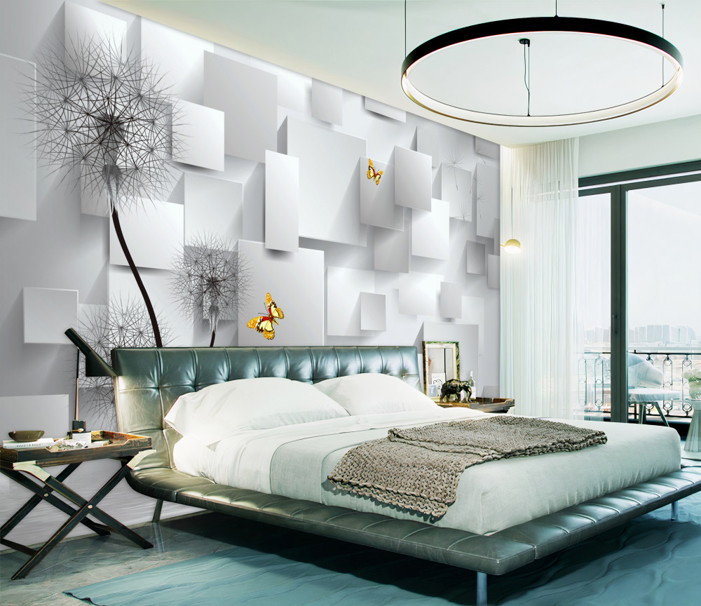 Tapeta Fototapeta mlecze na tle abstrakcyjnych białych kwadratów (artykuł a90215 ) z kategorii Fototapety 3D