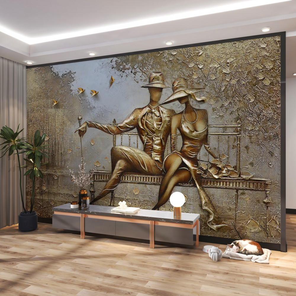 Tapeta Fototapeta młoda para na ławce podczas deszczu (artykuł a92513 ) z kategorii Fototapety 3D