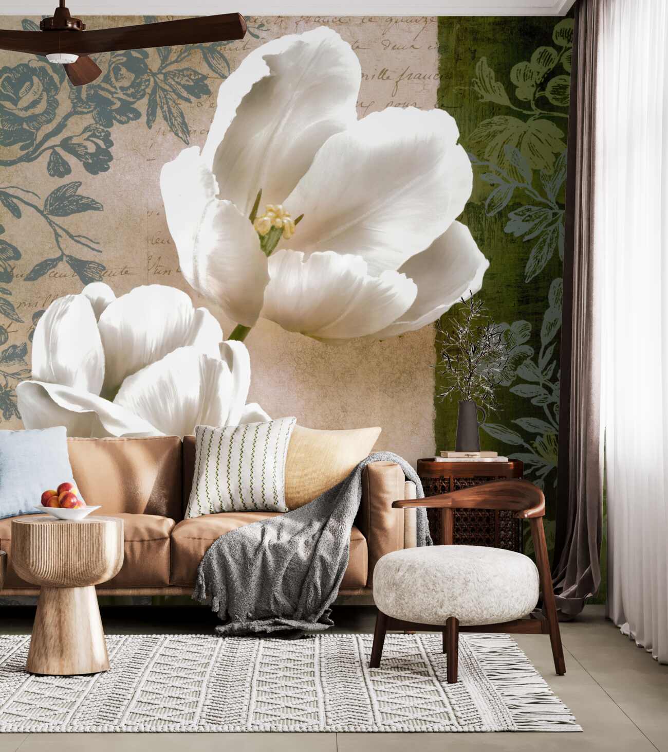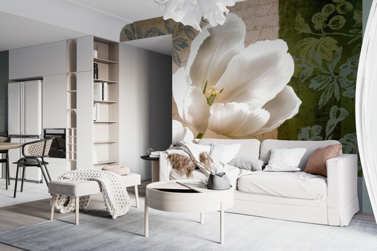 Tapeta Fototapeta Młode białe tulipany (artykuł a99841 ) z kategorii Fototapety 3D