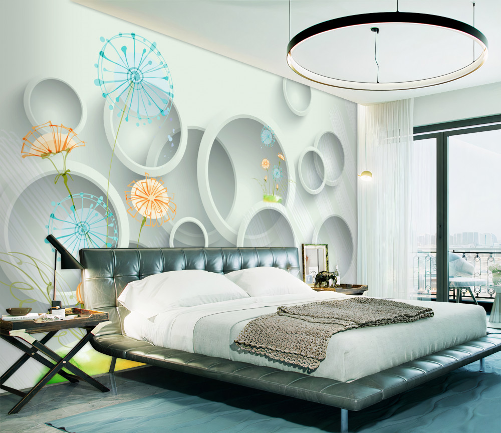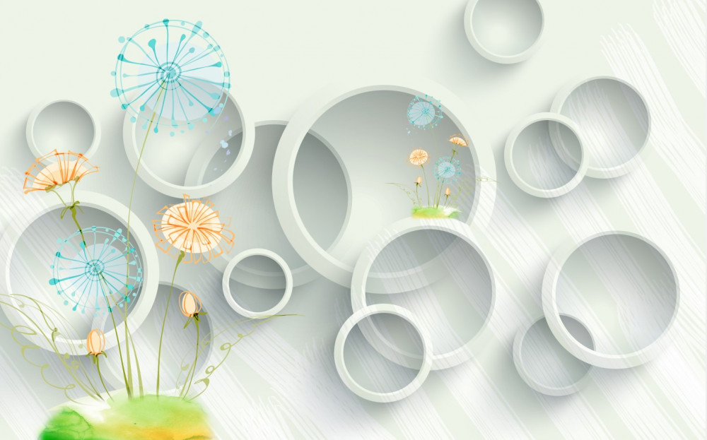 Tapeta Fototapeta mniszek lekarski na łące na tle kręgów (artykuł a90182 ) z kategorii Fototapety 3D