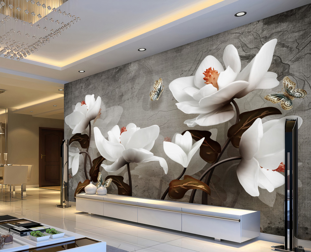 Tapeta Fototapeta motyl latający nad białymi kwiatami (artykuł a91064 ) z kategorii Fototapety 3D