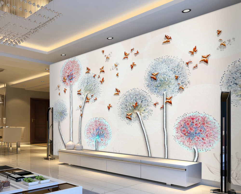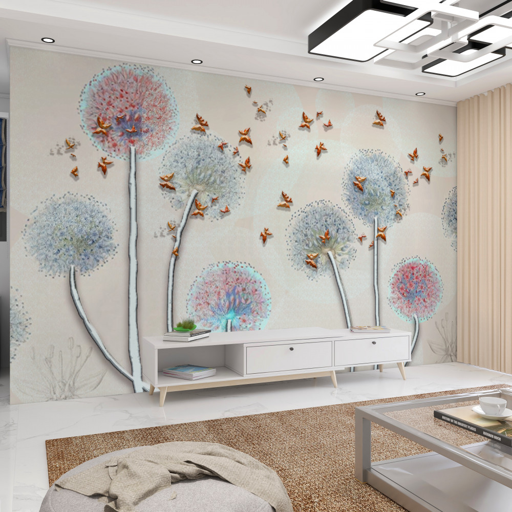 Tapeta Fototapeta motyle latają nad polem mleczy (artykuł pb8924 ) z kategorii Fototapety 3D