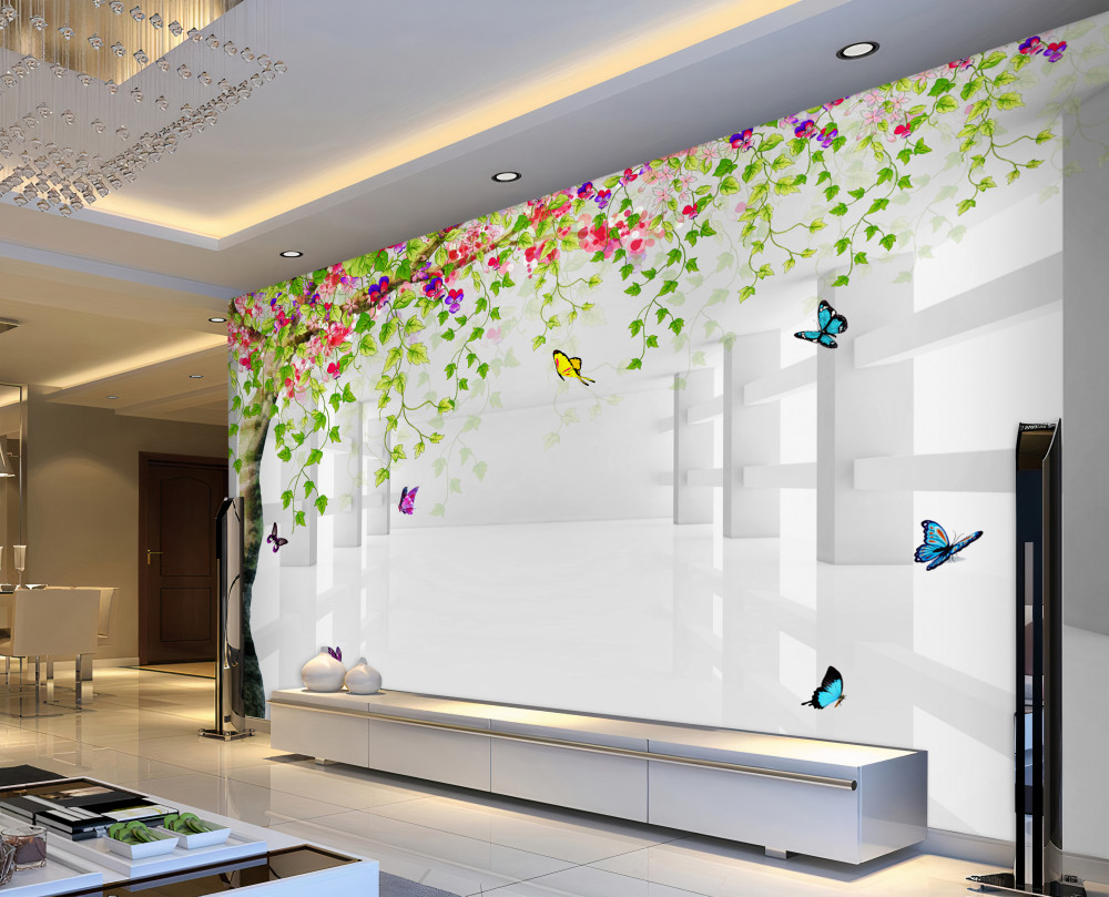 Tapeta Fototapeta motyle na kwitnącym drzewie w korytarzu (artykuł a91805 ) z kategorii Fototapety 3D