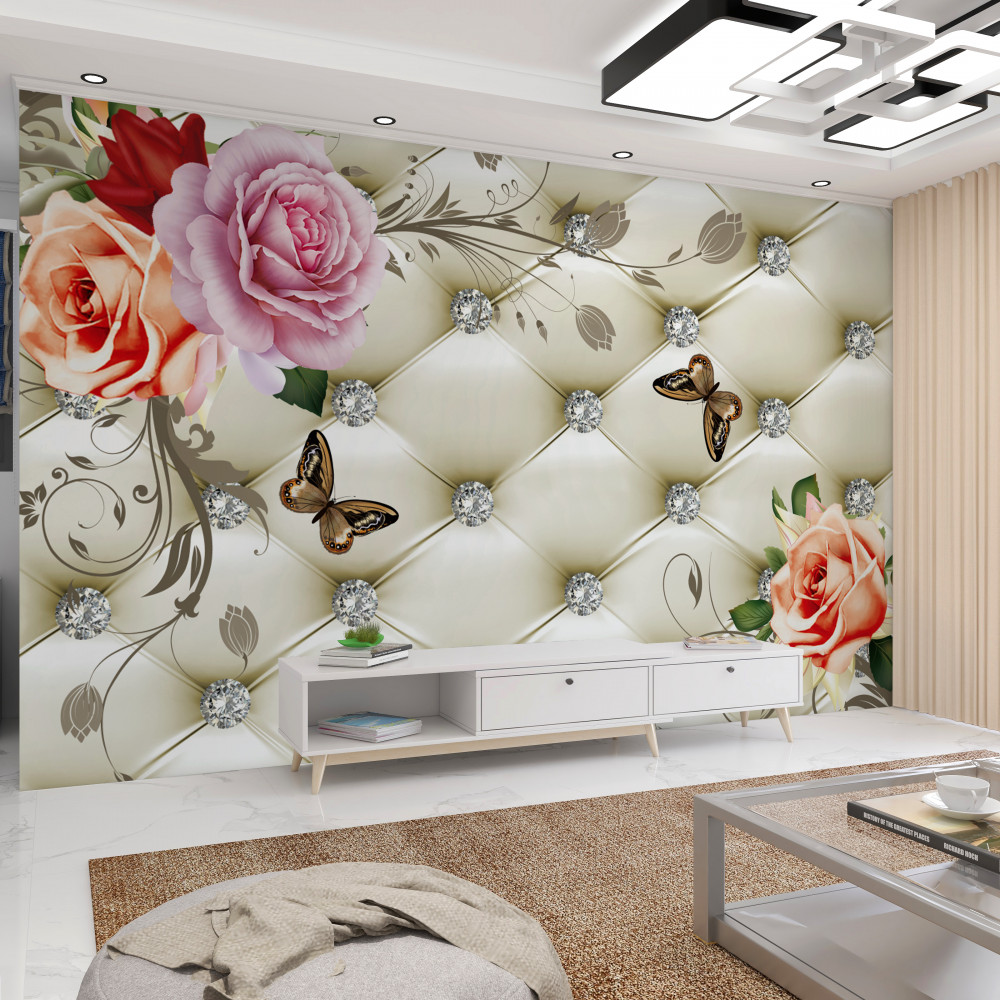 Tapeta Fototapeta motyle nad kolorowymi różami (artykuł a90043 ) z kategorii Fototapety 3D