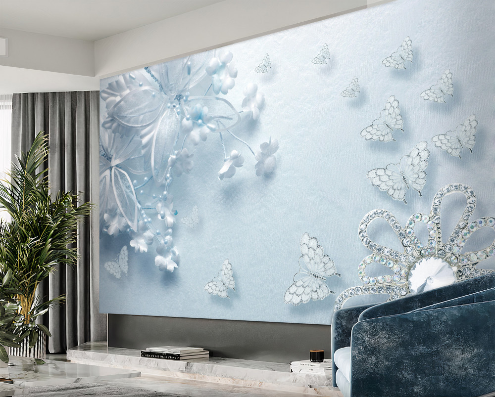 Tapeta Fototapeta motyle nad kwitnącymi pąkami (artykuł a94396 ) z kategorii Fototapety 3D