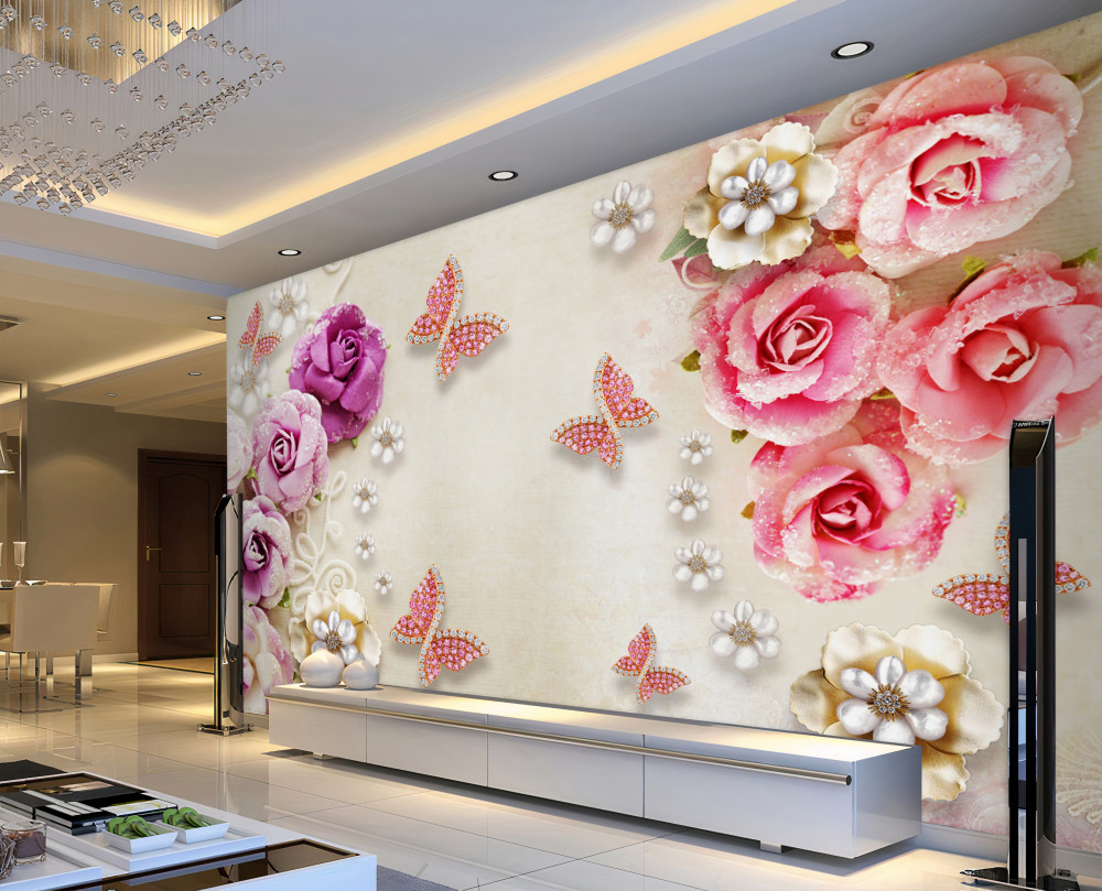 Tapeta Fototapeta motyle wykonane z kamieni wokół kwiatów (artykuł a90271 ) z kategorii Fototapety 3D