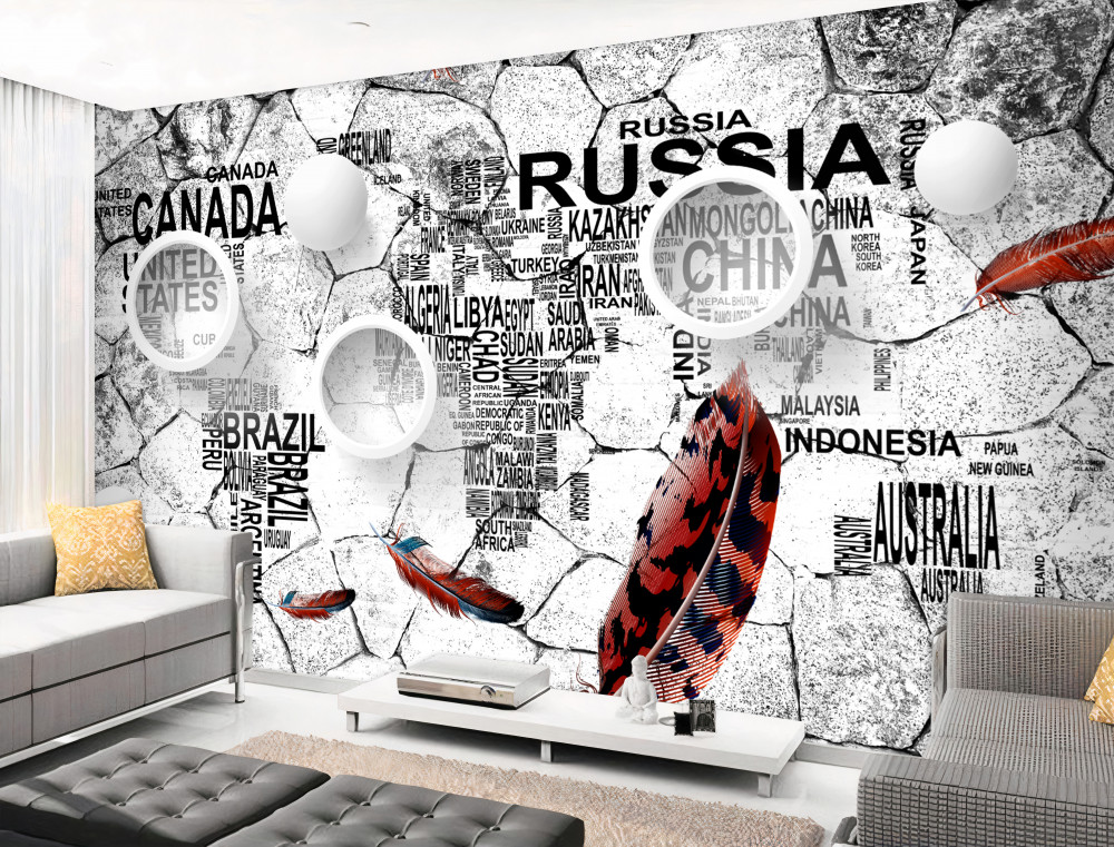 Tapeta Fototapeta nazwy krajów i pióra (artykuł a92191 ) z kategorii Fototapety 3D
