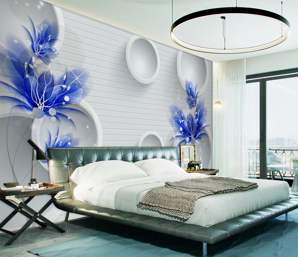 Tapeta Fototapeta niebieskie kwiaty na abstrakcyjnym tle z okręgami (artykuł a94292 ) z kategorii Fototapety 3D
