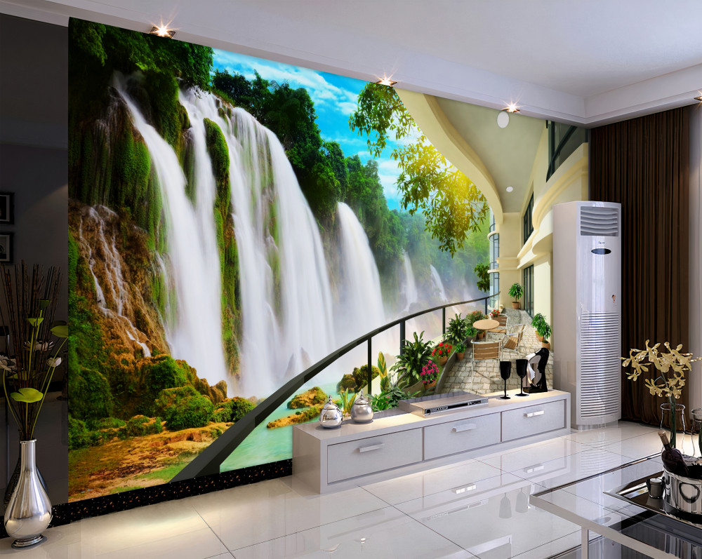 Tapeta Fototapeta niesamowity taras z widokiem na wodospad (artykuł a92536 ) z kategorii Fototapety 3D