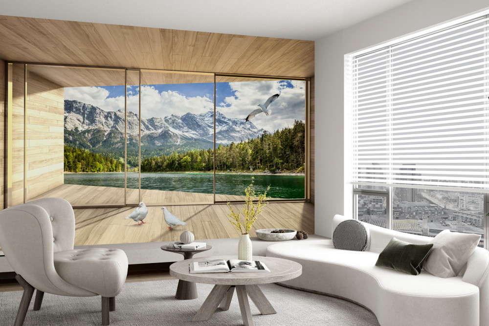Tapeta Fototapeta niesamowity widok na rzekę i góry (artykuł a93716 ) z kategorii Fototapety 3D