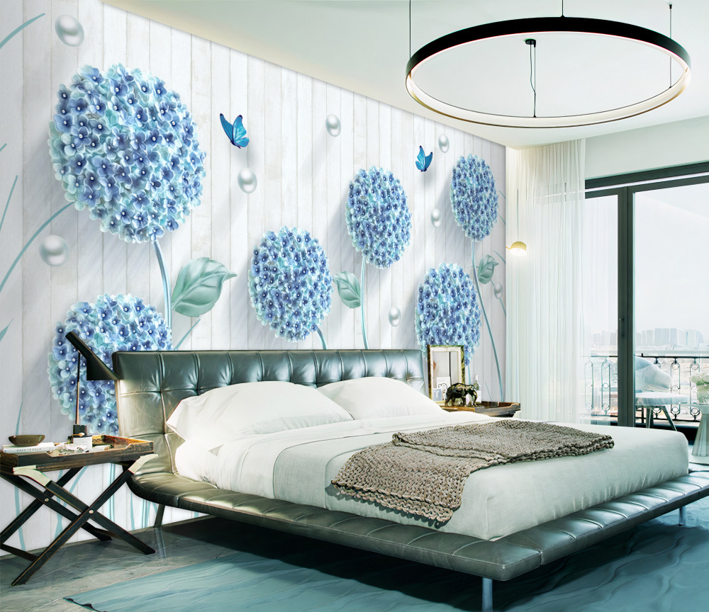 Tapeta Fototapeta niezwykłe niebieskie kwiaty i motyle (artykuł a91797 ) z kategorii Fototapety 3D