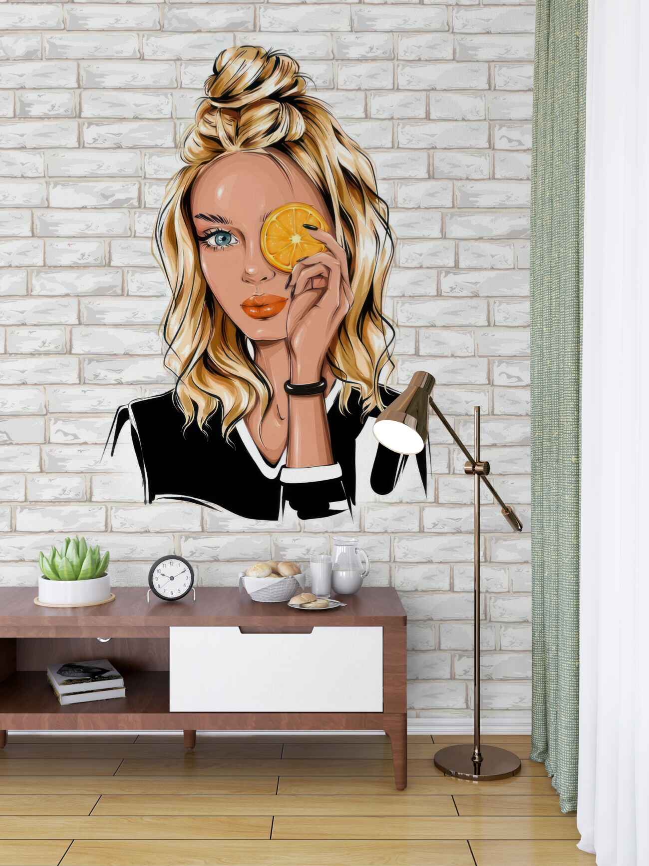 Tapeta Fototapeta Nowoczesna dziewczyna z pomarańczową (artykuł a99561 ) z kategorii Fototapety 3D
