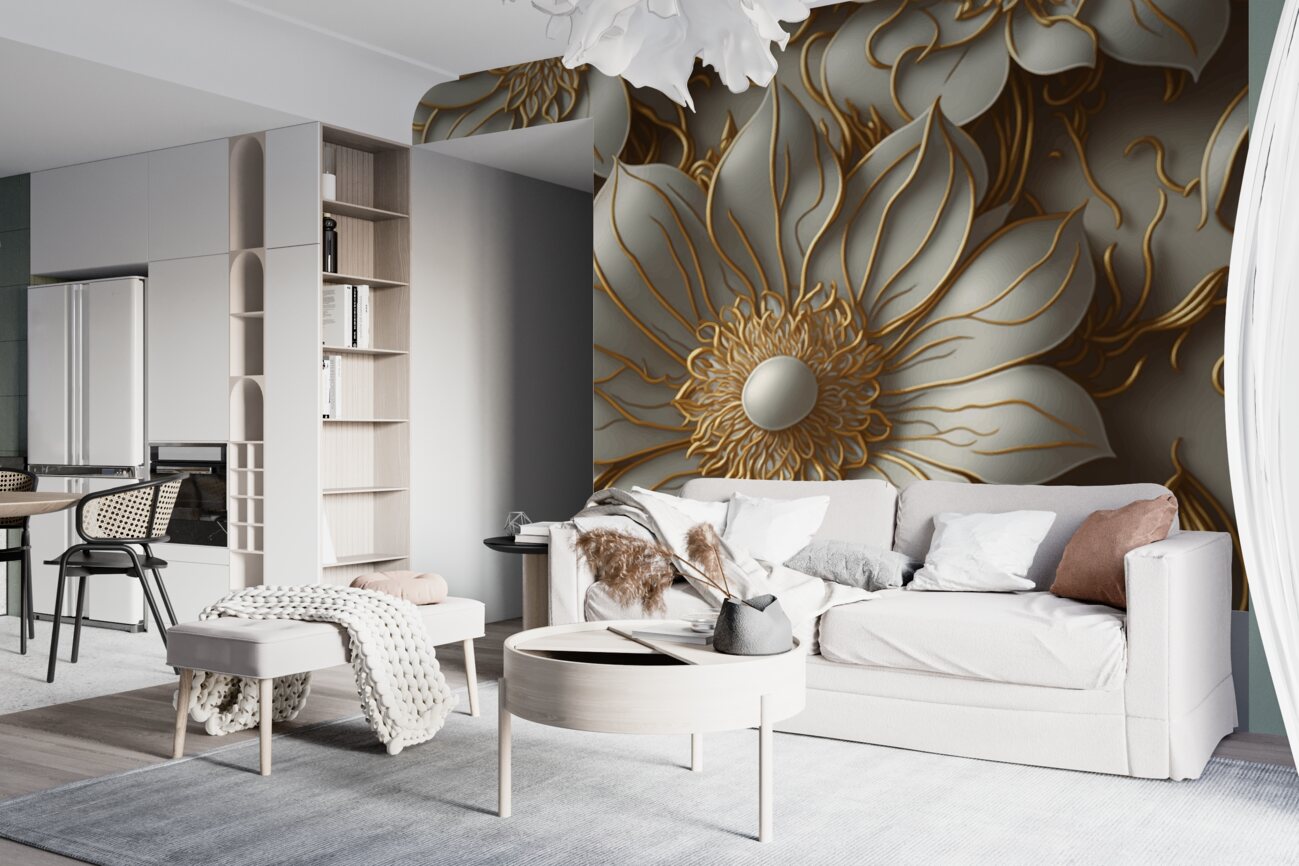 Tapeta Fototapeta Objętość białe kwiaty z perłami (artykuł a99945 ) z kategorii Fototapety 3D