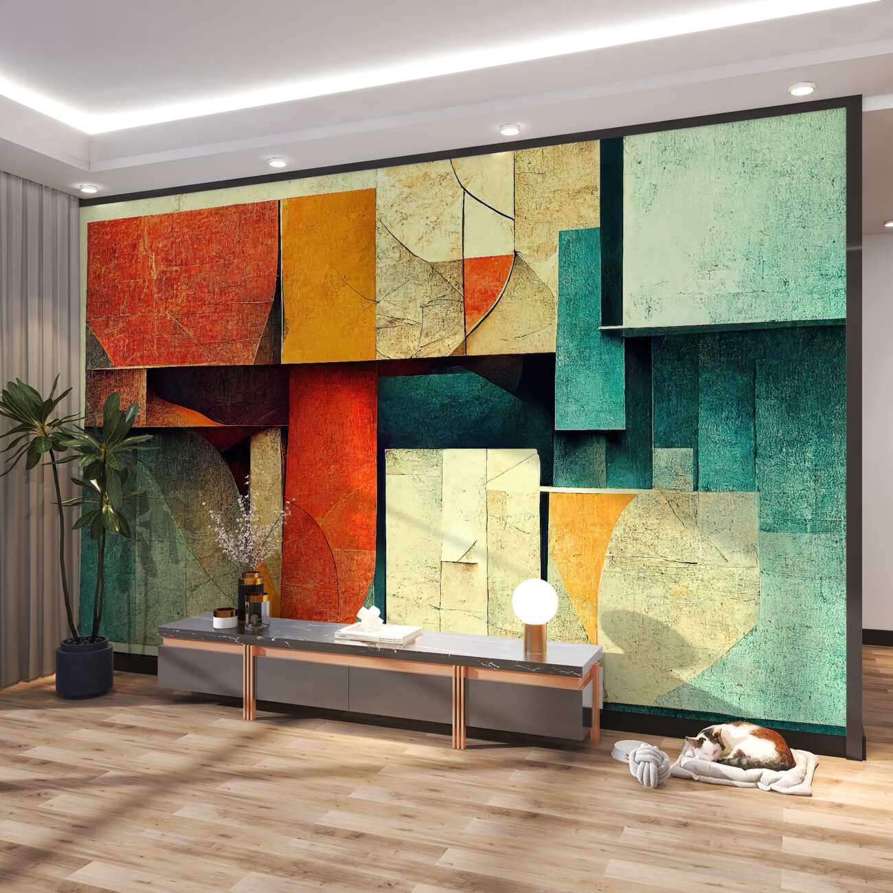 Tapeta Fototapeta Objętość geometryczne kolorowe figurki (artykuł a99764 ) z kategorii Fototapety 3D