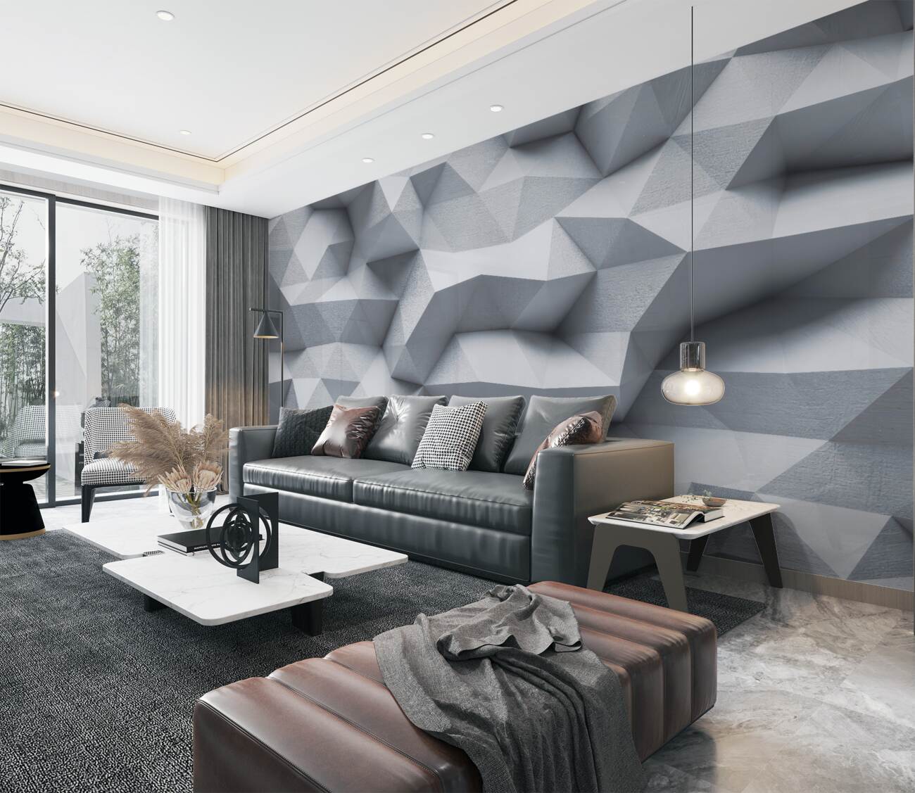 Tapeta Fototapeta Obszerna szara ściana w geometrii (artykuł a99330 ) z kategorii Fototapety 3D