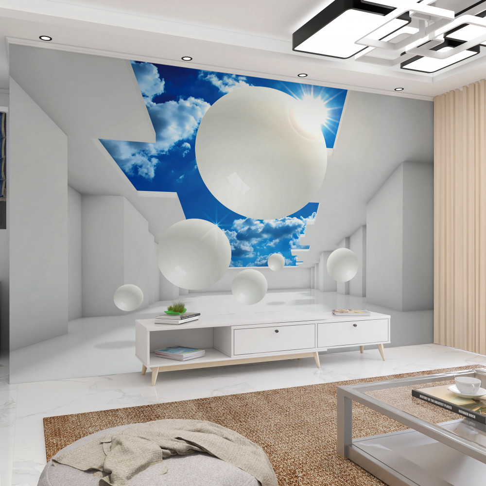 Tapeta Fototapeta ogromne białe kule na tle nieba i słońca (artykuł a91322 ) z kategorii Fototapety 3D
