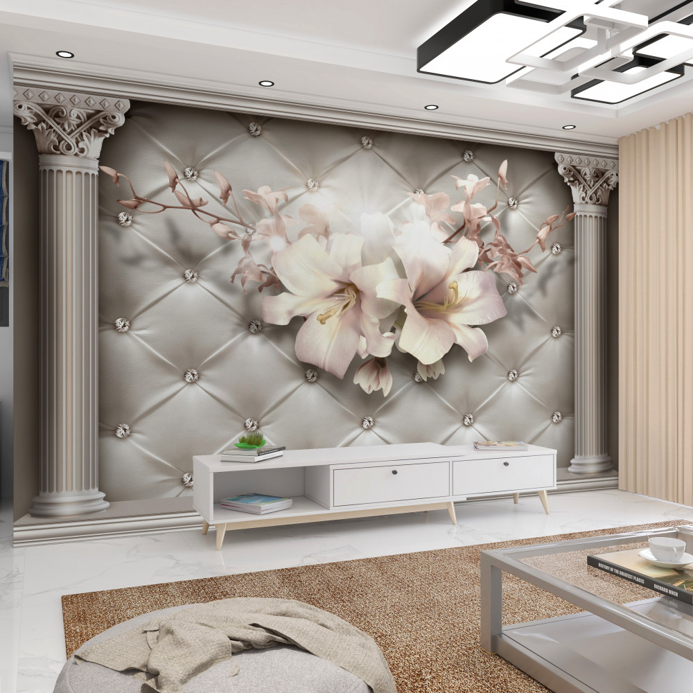 Tapeta Fototapeta ogromne białe lilie na ścianie (artykuł a93725 ) z kategorii Fototapety 3D