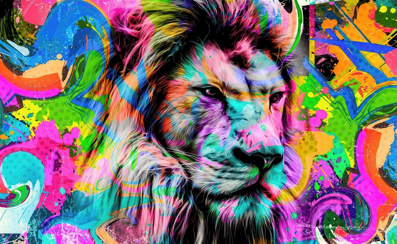Tapeta Fototapeta Okropny lew w jasnych kolorach graffiti (artykuł a99319 ) z kategorii Fototapety 3D