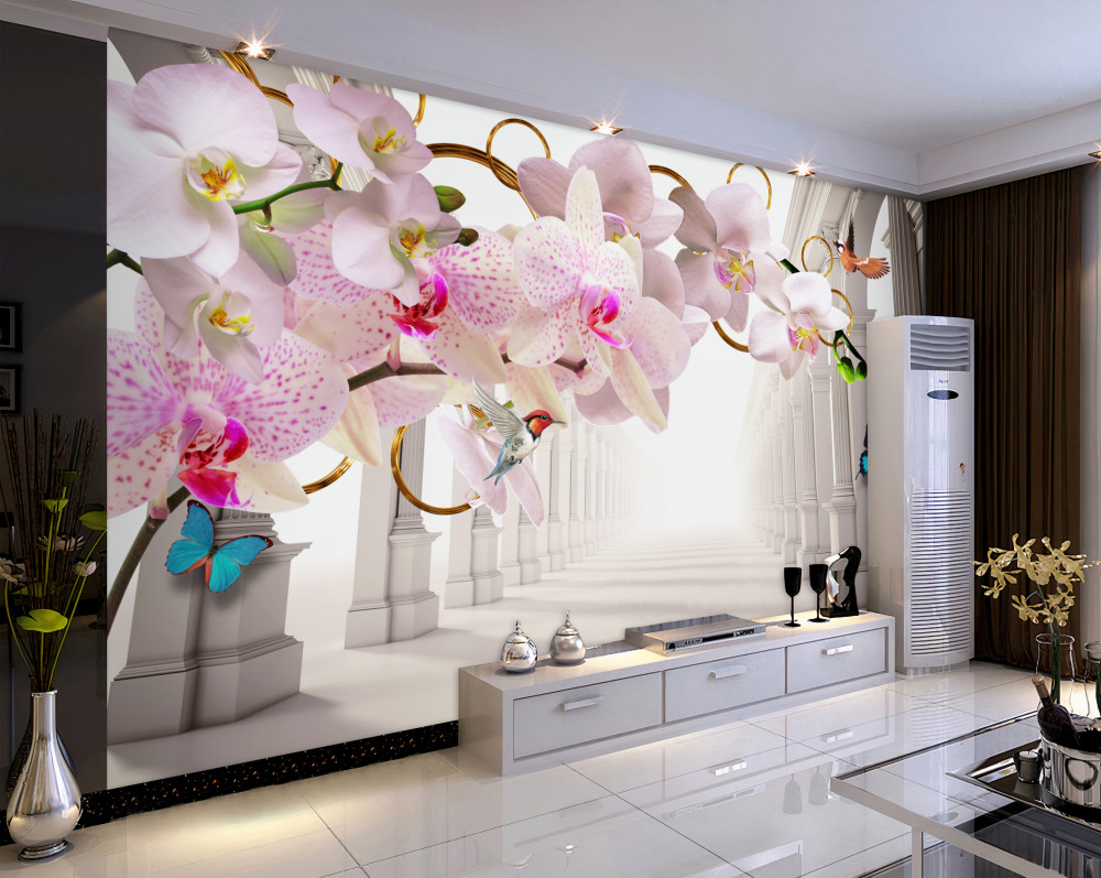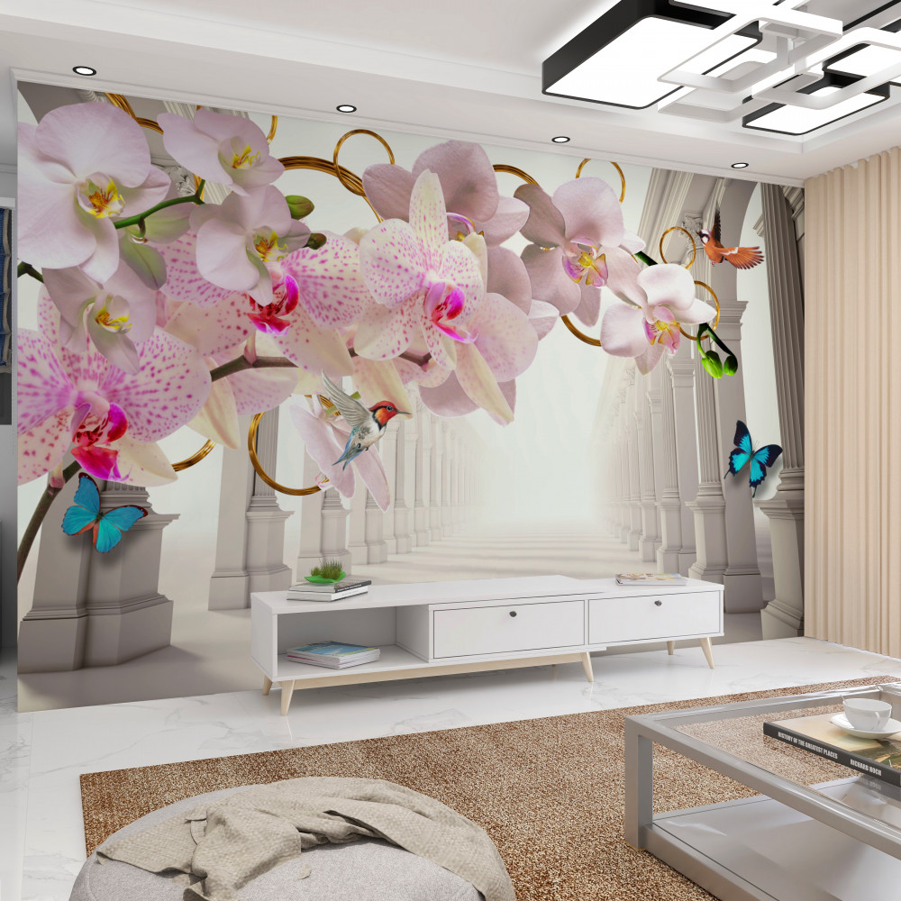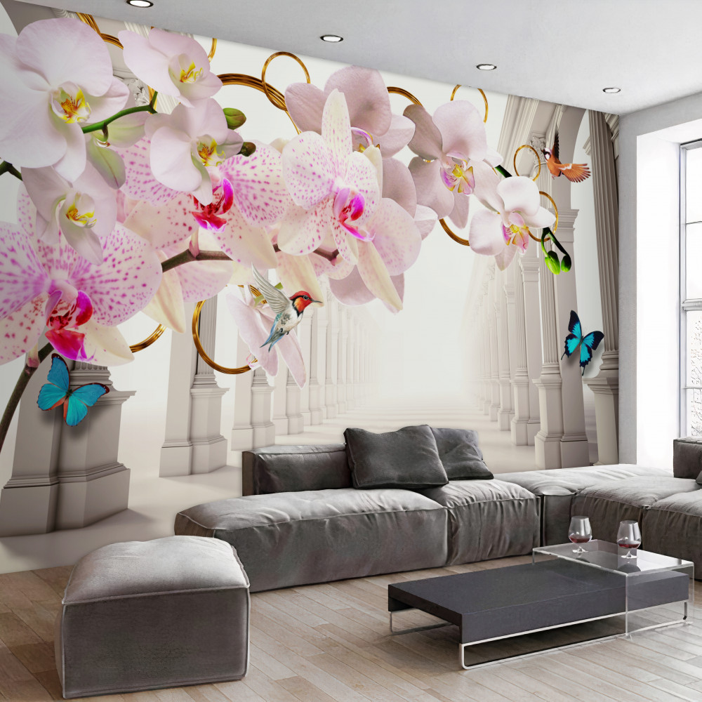 Tapeta Fototapeta orchidee i motyle na tle białych łuków (artykuł a90963 ) z kategorii Fototapety 3D