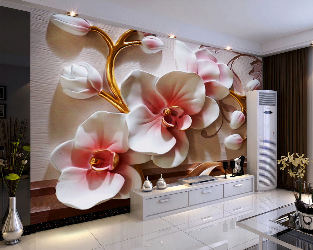 Tapeta Fototapeta orchidee i ogromne kwitnące pąki (artykuł a90656 ) z kategorii Fototapety 3D