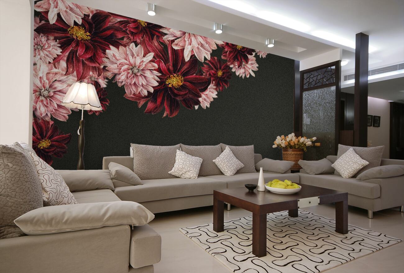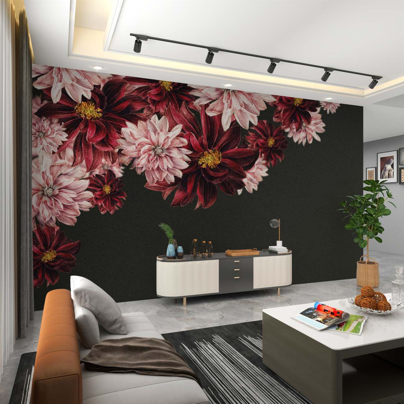 Tapeta Fototapeta Ornament z różowymi i czerwonymi kwiatami (artykuł u10780 ) z kategorii Fototapety 3D