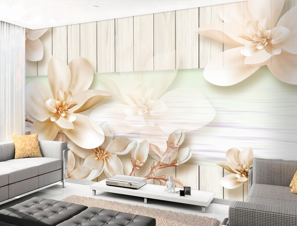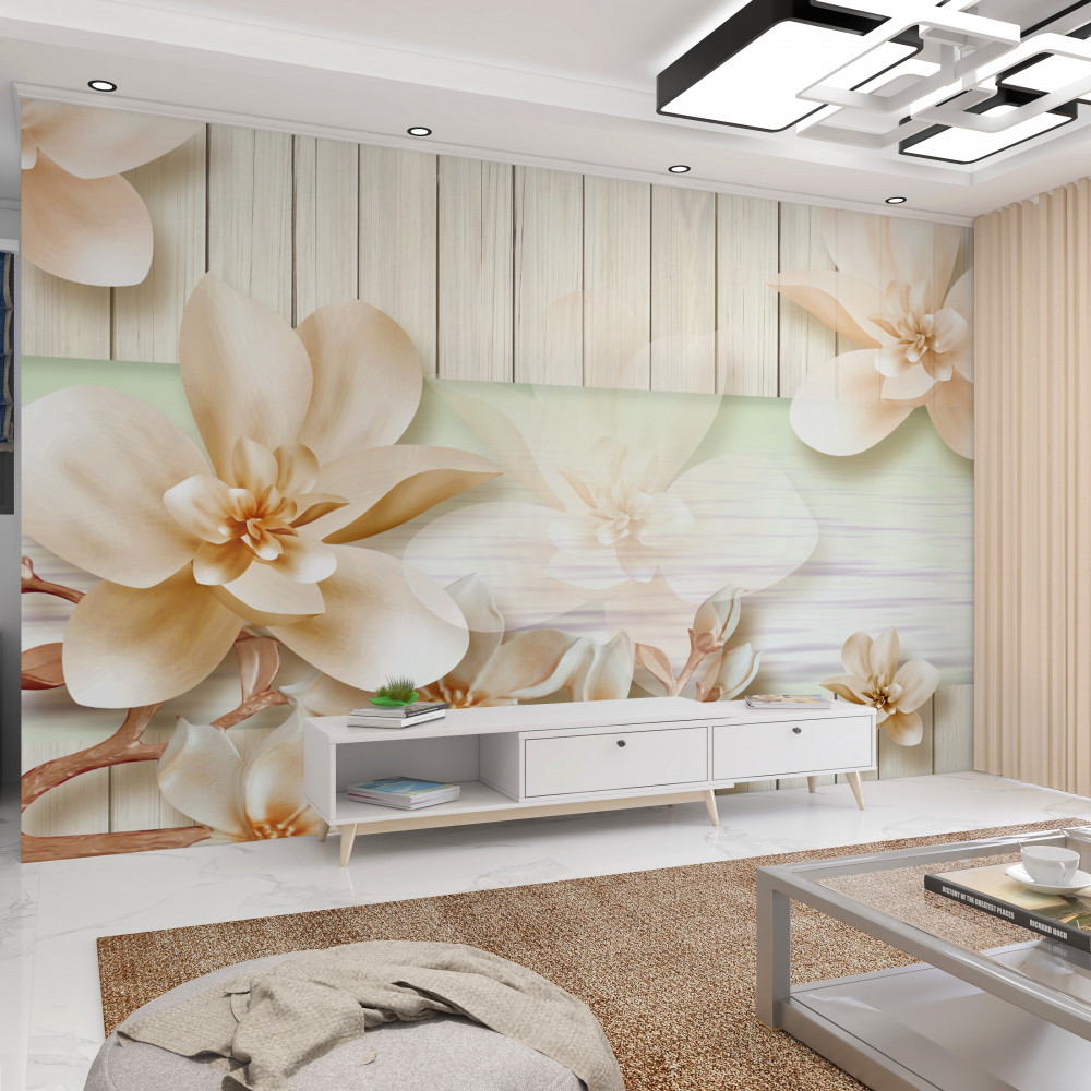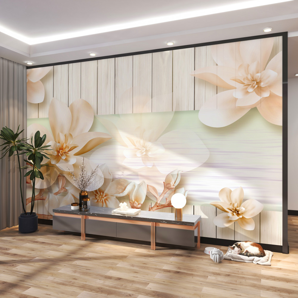 Tapeta Fototapeta pąki białych brzoskwiń na otwartym parkiecie (artykuł pb5559 ) z kategorii Fototapety 3D