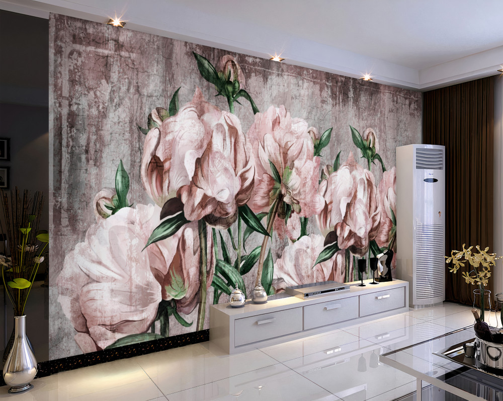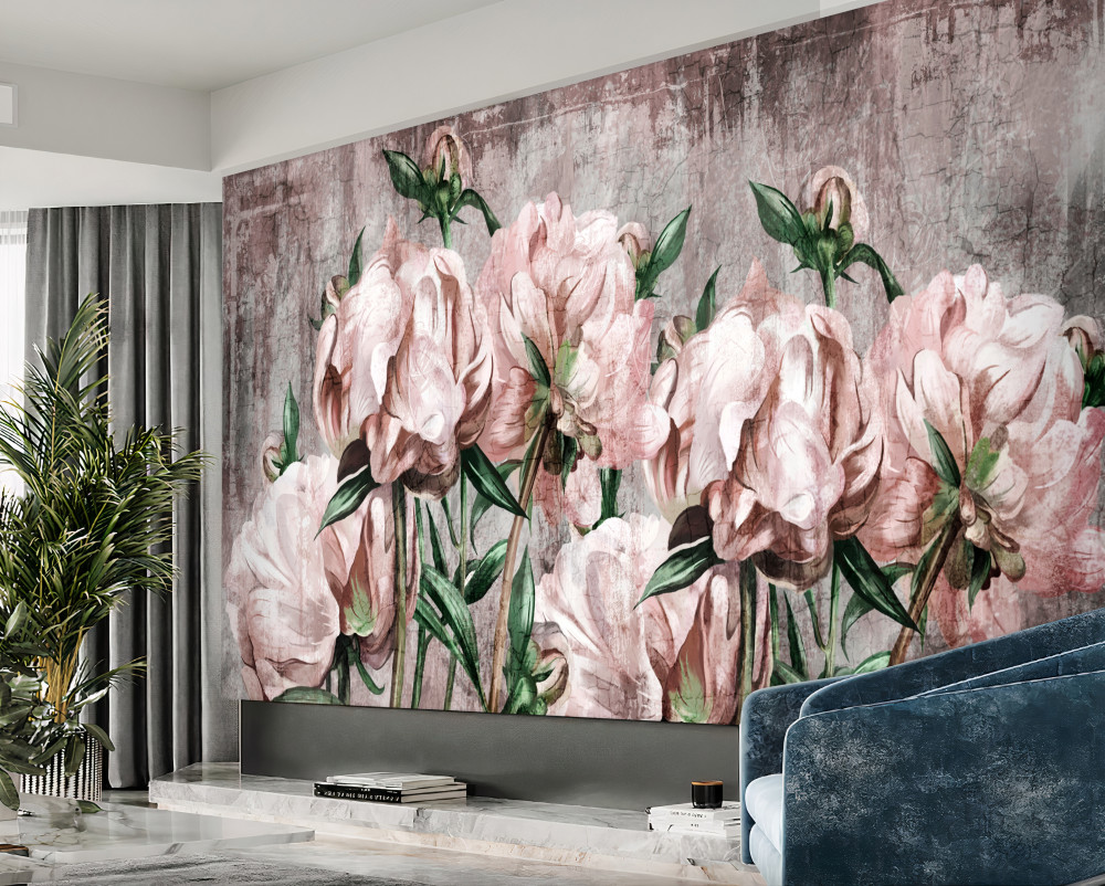 Tapeta Fototapeta pastelowe róże na betonowej ścianie (artykuł a92878 ) z kategorii Fototapety 3D