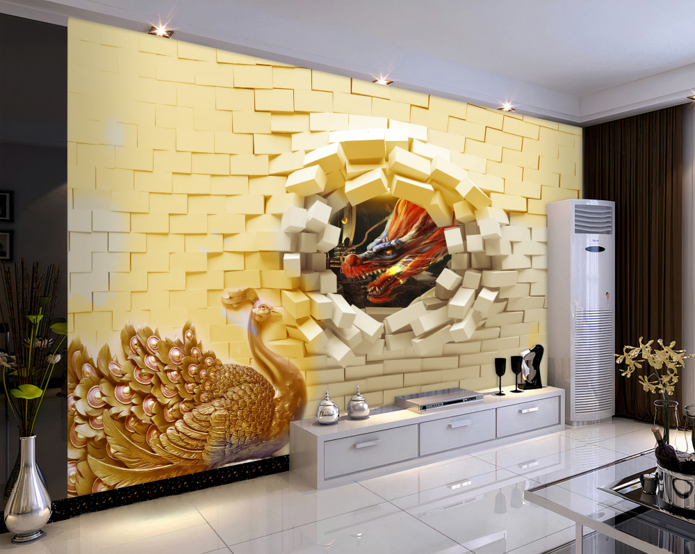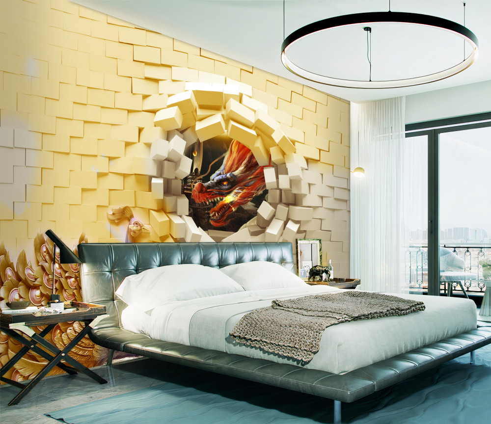 Tapeta Fototapeta paw niszczący ścianę (artykuł pb8890 ) z kategorii Fototapety 3D