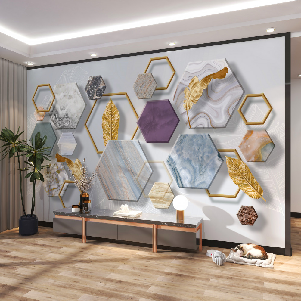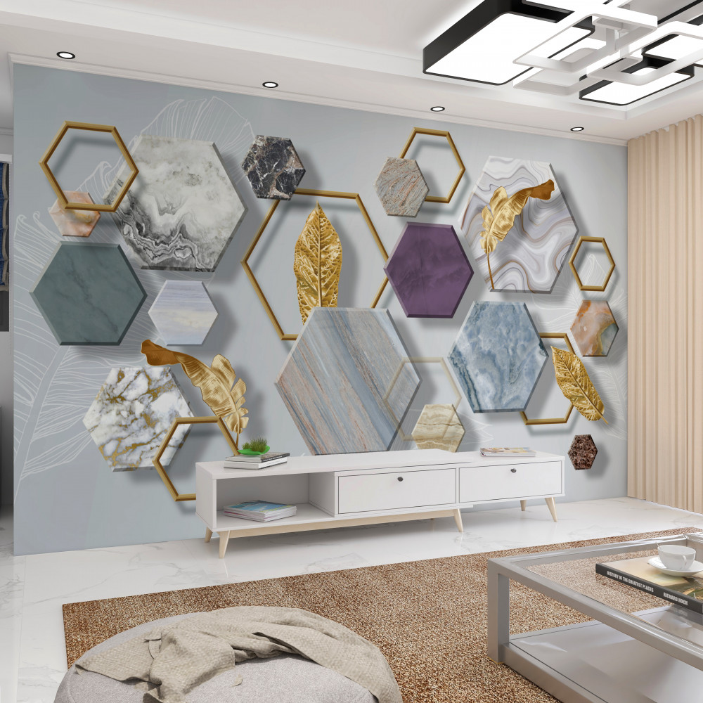 Tapeta Fototapeta pięciokąty z różnymi wypełnieniami (artykuł a90395 ) z kategorii Fototapety 3D