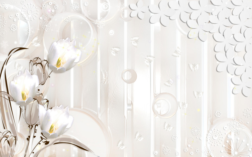 Tapeta Fototapeta piękne białe tulipany i krople wody (artykuł a94446 ) z kategorii Fototapety 3D