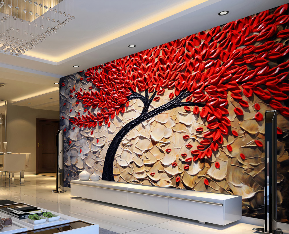 Tapeta Fototapeta piękne czerwono kwitnące drzewo (artykuł a92579 ) z kategorii Fototapety 3D