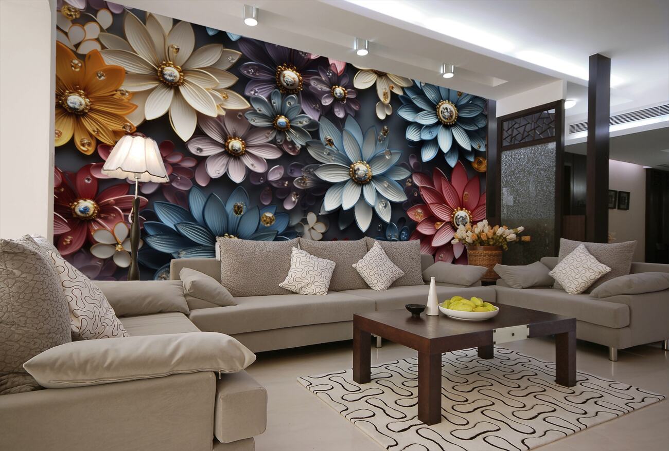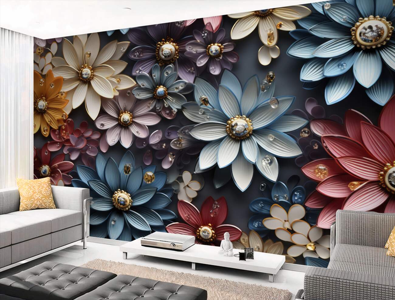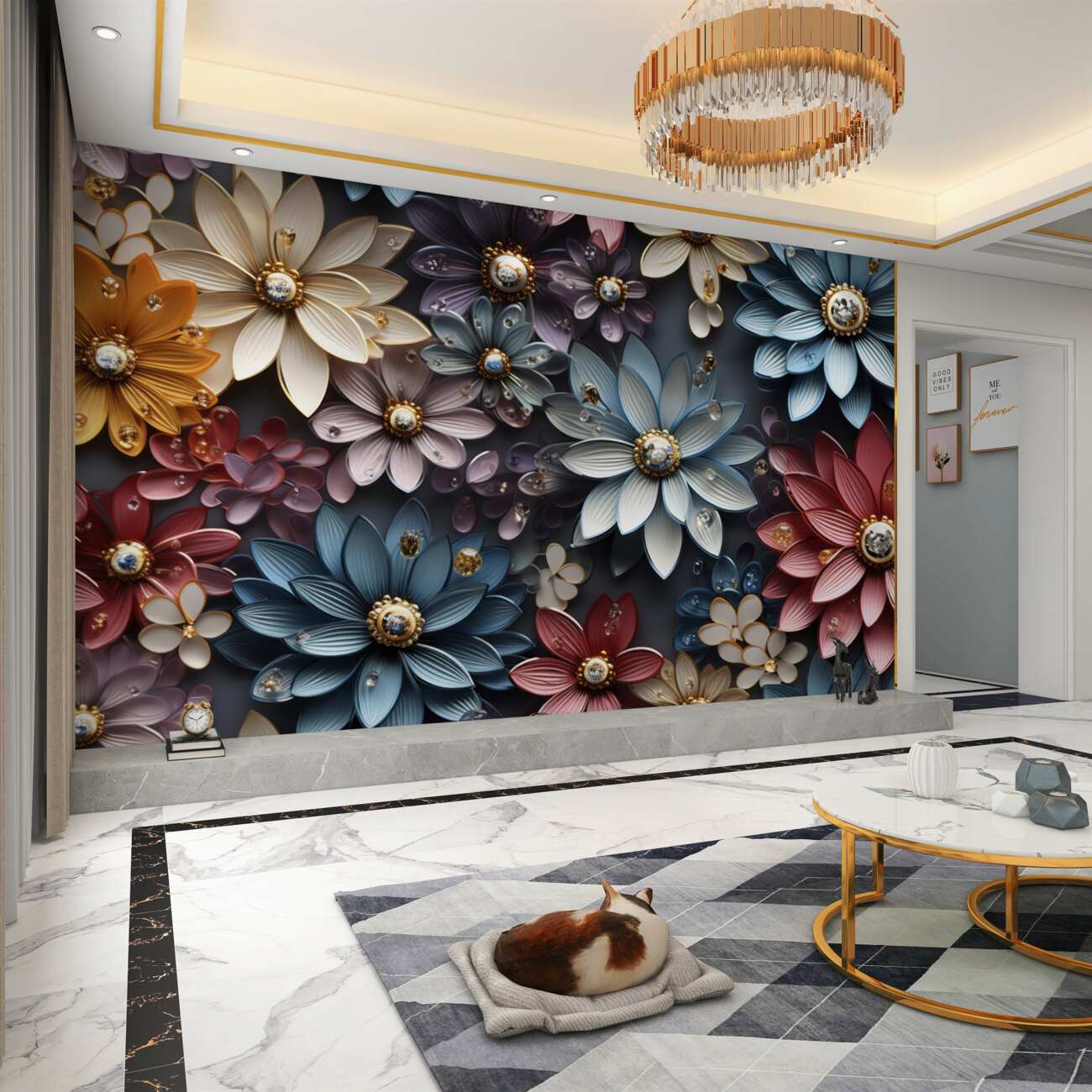 Tapeta Fototapeta Piękne wielokolowane kwiaty objętościowe (artykuł u11606 ) z kategorii Fototapety 3D