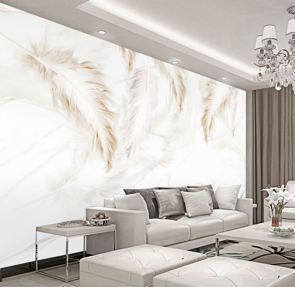 Tapeta Fototapeta pióra o złotych proporcjach na jasnym tle (artykuł a94074 ) z kategorii Fototapety 3D