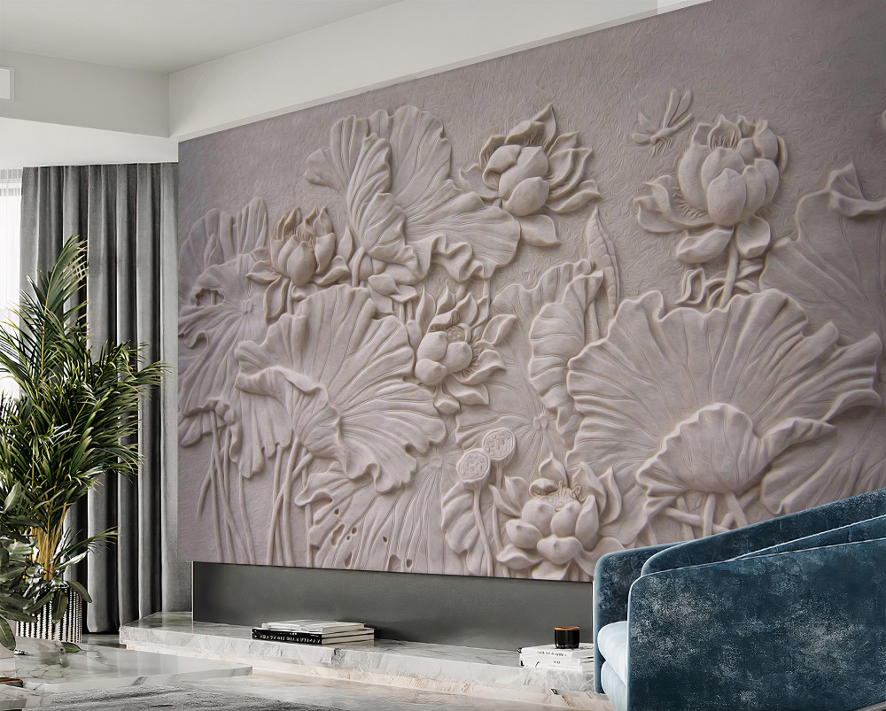 Tapeta Fototapeta płaskorzeźba przedstawiająca rośliny i kwiaty na glinie (artykuł a94419 ) z kategorii Fototapety 3D