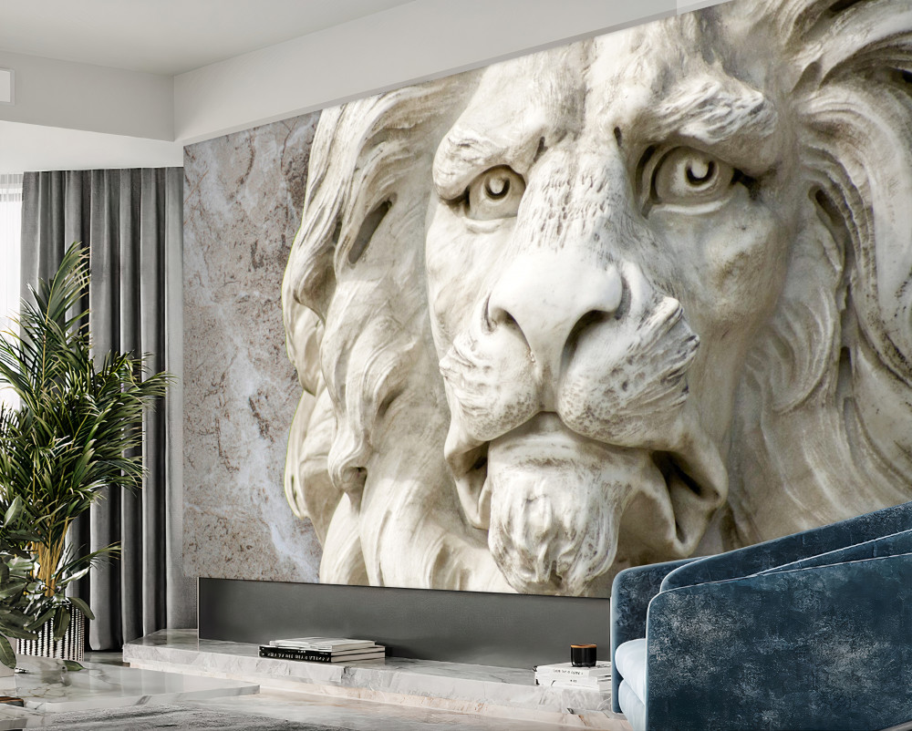 Tapeta Fototapeta płaskorzeźba przedstawiająca twarz lwa (artykuł pb4463 ) z kategorii Fototapety 3D