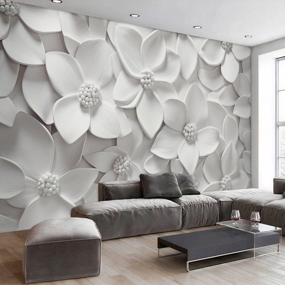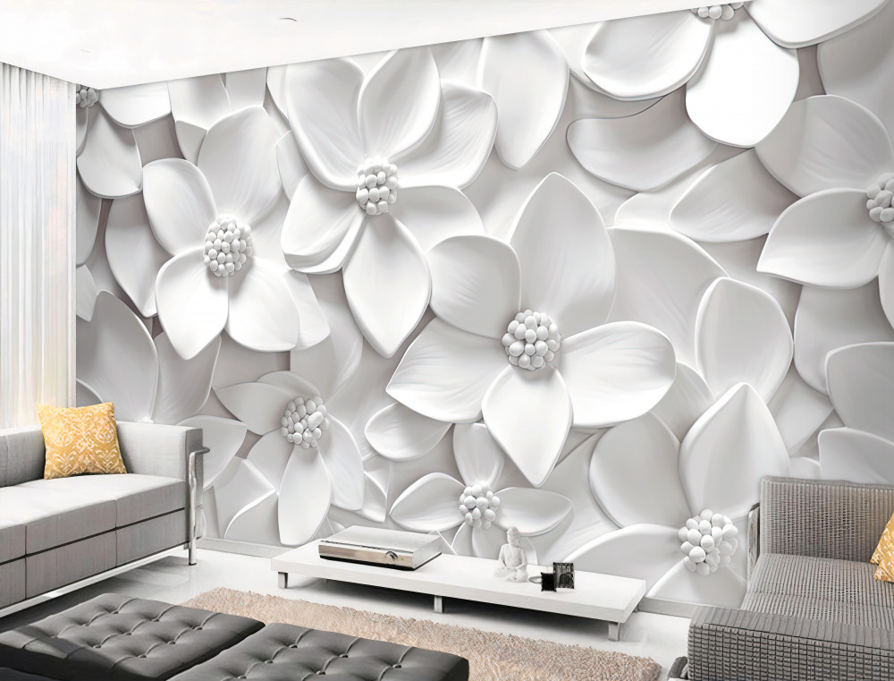 Tapeta Fototapeta płaskorzeźba z białymi kwiatami (artykuł a93157 ) z kategorii Fototapety 3D