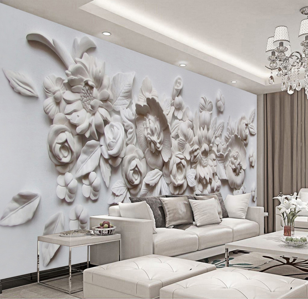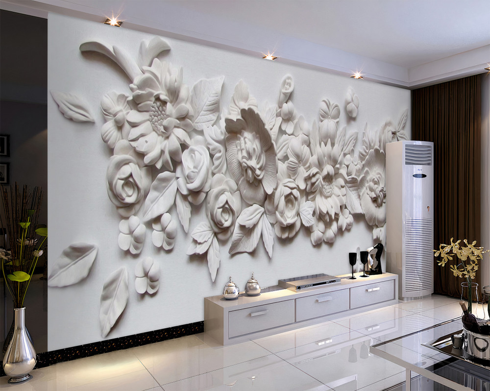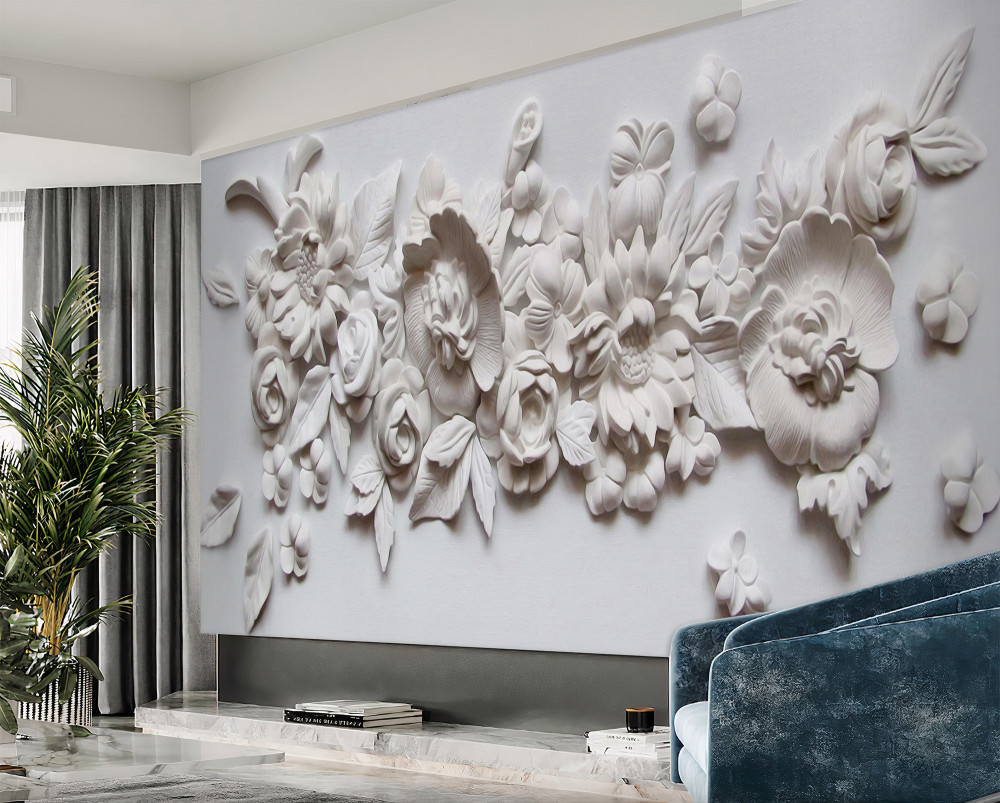 Tapeta Fototapeta płaskorzeźba z białymi kwiatami (artykuł a94199 ) z kategorii Fototapety 3D
