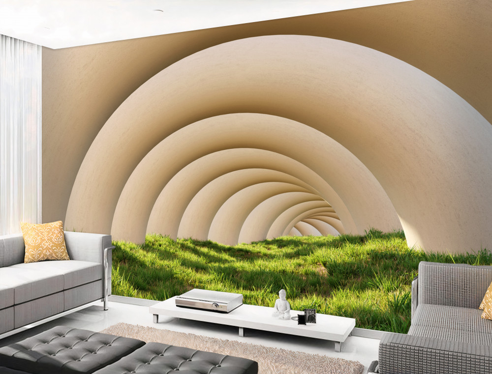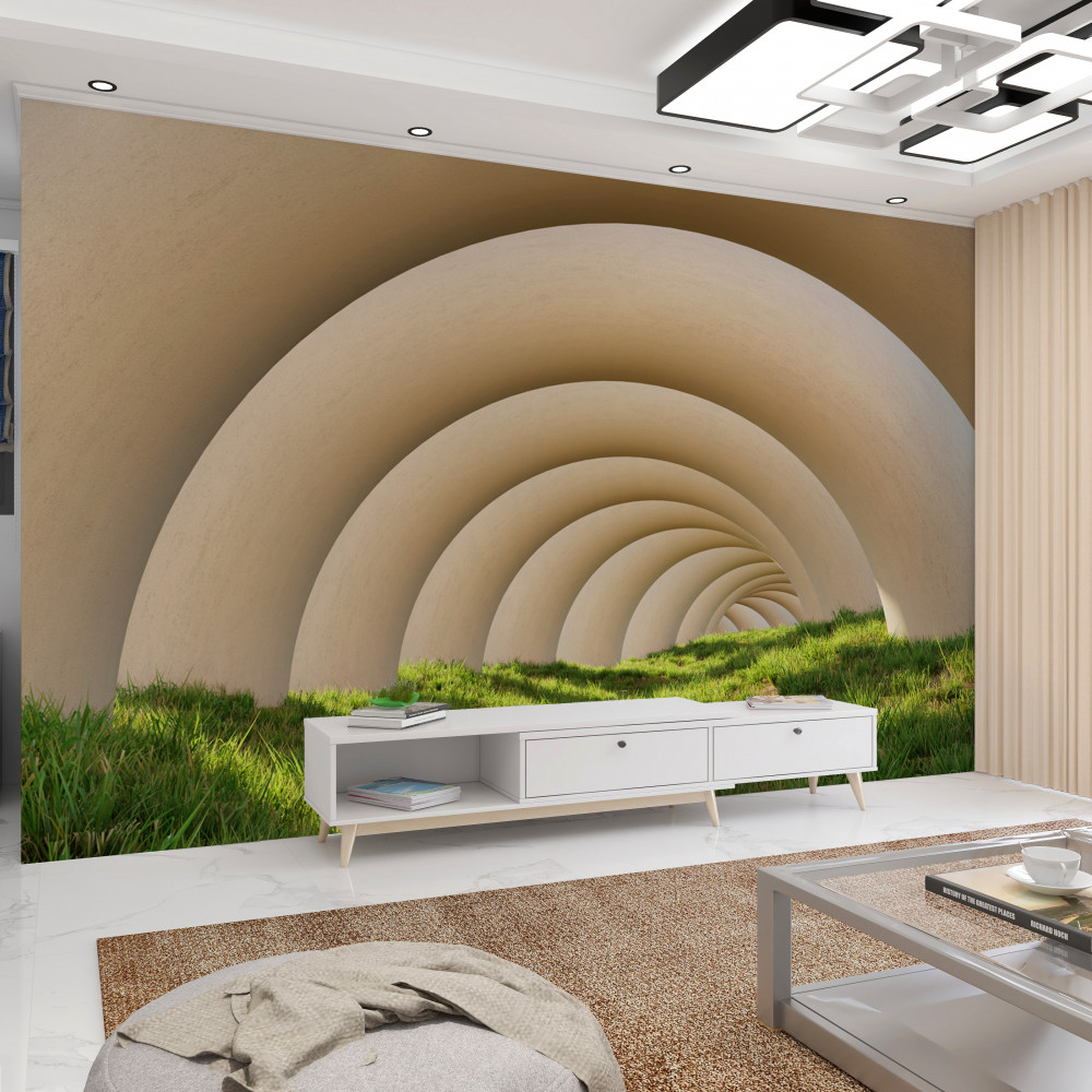 Tapeta Fototapeta płynące okrągłe łuki z zieloną trawą (artykuł a93133 ) z kategorii Fototapety 3D