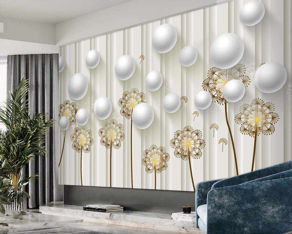 Tapeta Fototapeta pływające białe perły i złote kwiaty (artykuł a91181 ) z kategorii Fototapety 3D
