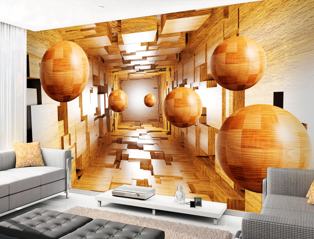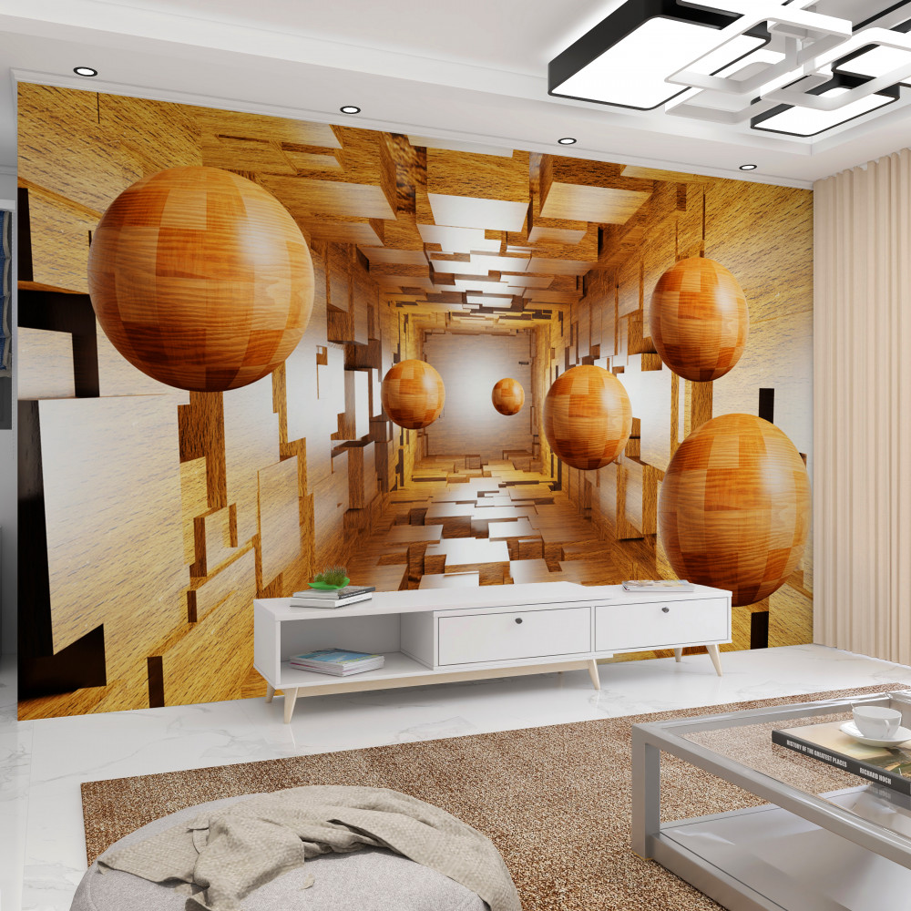 Tapeta Fototapeta pływające drewniane kule, które odlatują (artykuł a93228 ) z kategorii Fototapety 3D