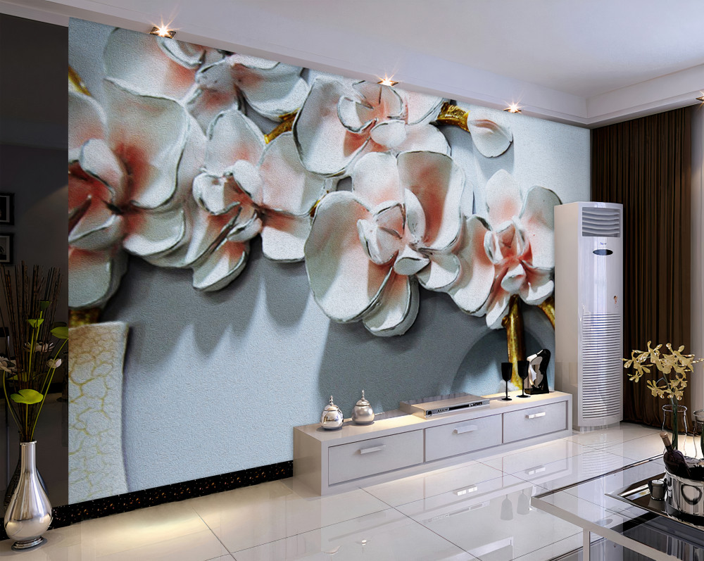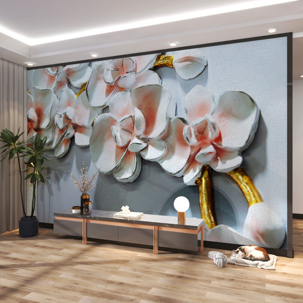 Tapeta Fototapeta podniesione gałęzie białej orchidei (artykuł pb4489 ) z kategorii Fototapety 3D