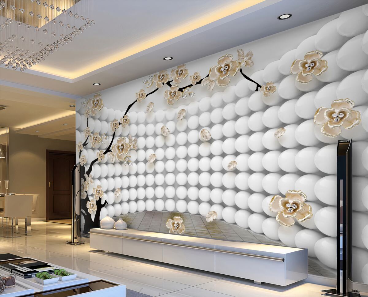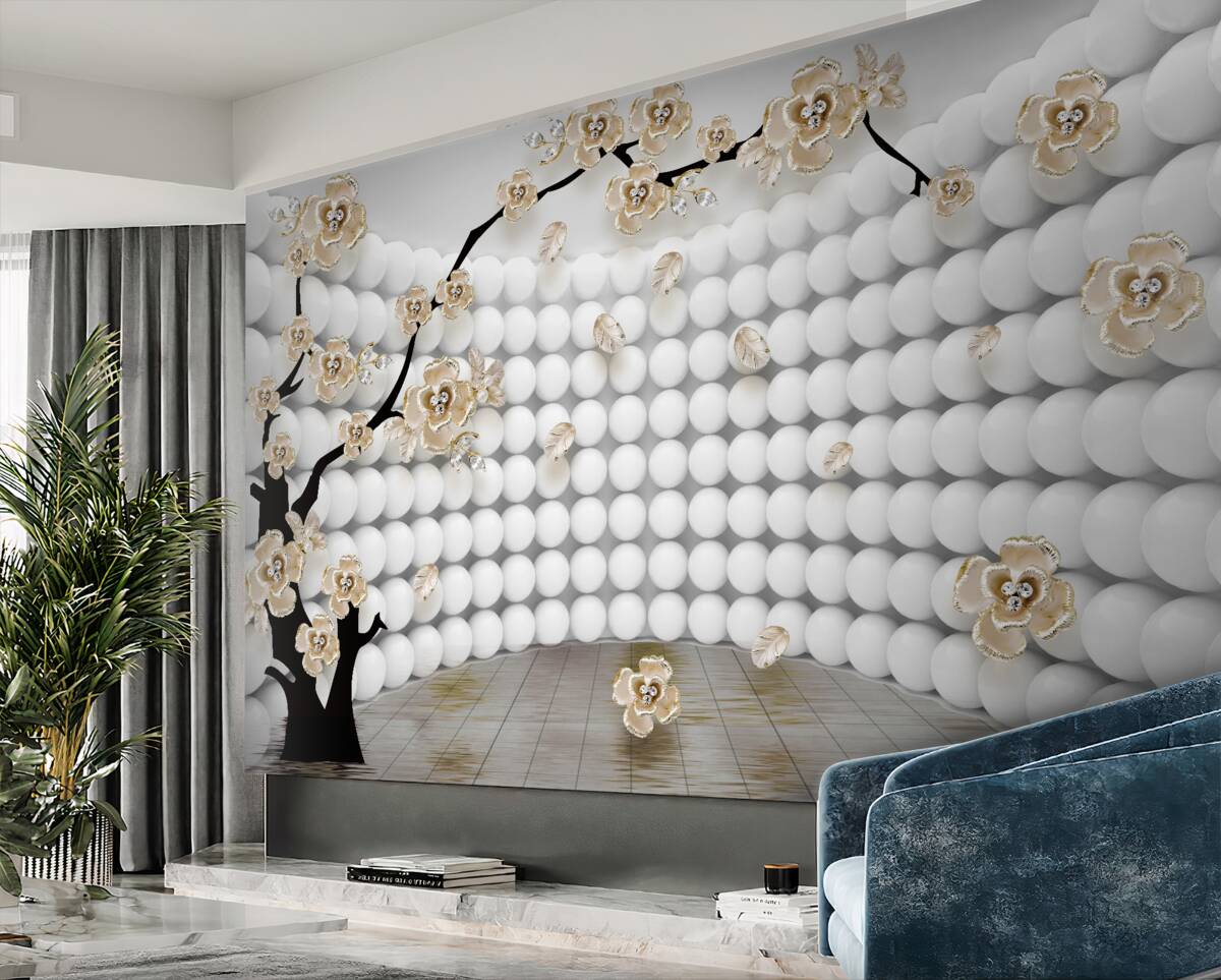 Tapeta Fototapeta Pokój wykonany z kulek 3D i drzewa (artykuł a98827 ) z kategorii Fototapety 3D