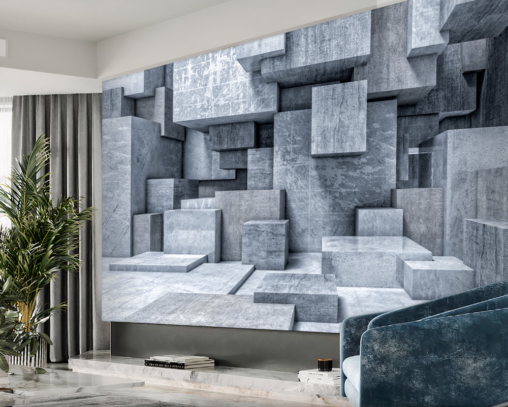 Tapeta Fototapeta pokój z kwadratowymi postaciami (artykuł a90838 ) z kategorii Fototapety 3D