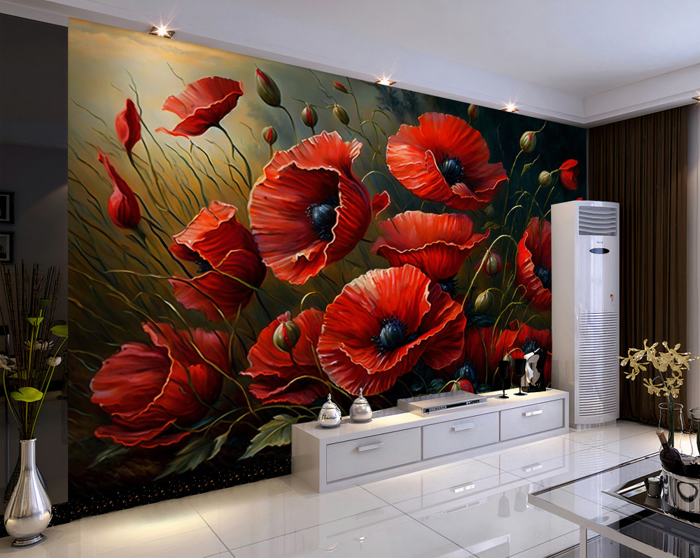 Tapeta Fototapeta pole czerwonych maków podczas burzy (artykuł a93144 ) z kategorii Fototapety 3D